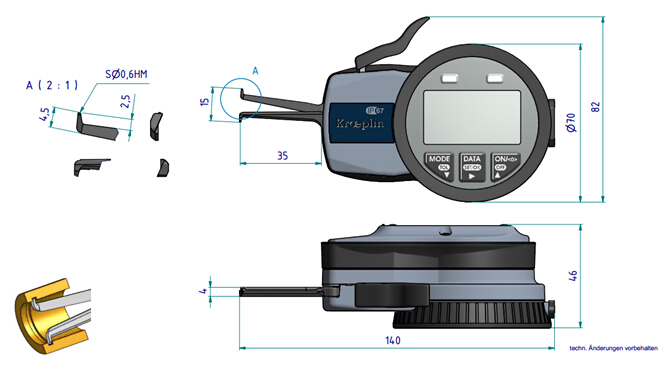 德國KROEPLIN數顯內卡規G105已停產,換成新型號L105,電子表盤更大,更方便讀數。測量范圍:5-15mm,讀值0.005mm.