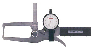 孔雀peacock帶表外卡規LA-5,喉深150mm,測量范圍0-50mm,精度0.05mm,適用于厚度測量,外徑測量等。這種簡單測量儀器非常適合測量通常被認為難以測量的區域的外徑和厚度。